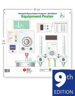 Simulate a realistic delivery room setting during your NRP training courses with the NRP Equipment Poster. Features images of a manometer, oxygen blender, pulse oximeter, and more.